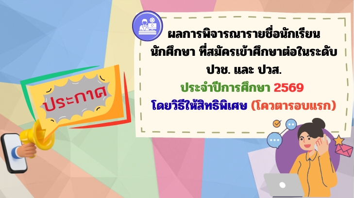 ประกาศรับสมัครเรียนประกาศรับสมัครนักเรียน นักศึกษา เข้าศึกษาต่อระดับ ปวช. และ ปวส. โดยวิธีให้สิทธิพิเศษ (โควต้ารอบแรก) ประจำปีการศึกษา 2569 adminkknicweb / 19 กันยายน 2025 ประกาศวิทยาลัย ใบรับ
