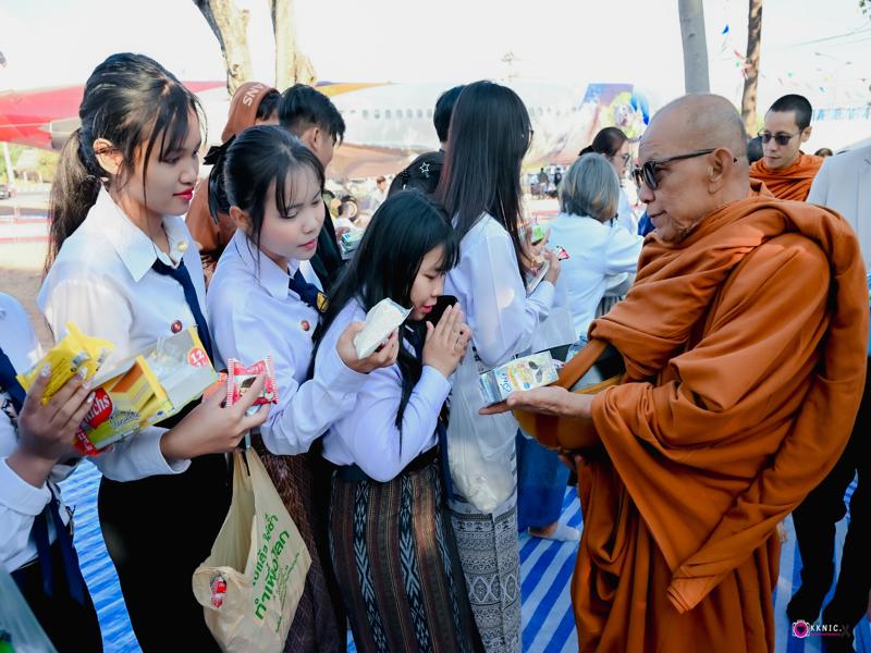 ออกเดินรับบิณฑบาต ณ ลานรอบเครื่องบิน